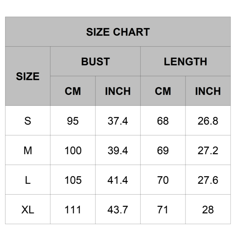 Check the size chart before ordering to ensure the best fit.
